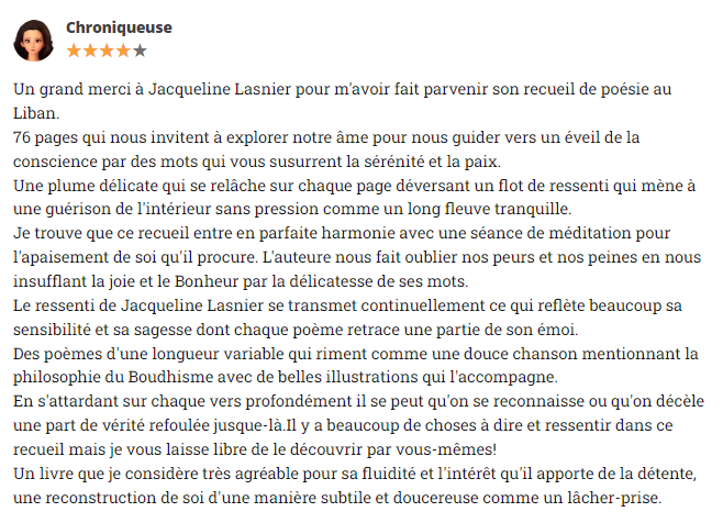 Renaître à soi-même, c’est découvrir notre but sur Terre. Le lecteur l’apprendra au fil des pages, il s’immergera dans un monde nouveau. Il va vivre… enfin !